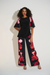 Joseph Ribkoff Black/Multi Floral Print Boat Neck Short Chiffon Sleeves Top 253763