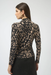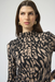 This Joseph Ribkoff fitted top combines timeless sophistication with contemporary edge. The striking animal print pattern adds visual interest to the classic black and multi-color palette. A refined mock neck and long straight sleeves create a polished silhouette, while thoughtful design details—including pleated accents at the right front shoulder seam and subtle side shirring—provide dimension and flattering structure. Perfect for elevating your everyday wardrobe with understated elegance.