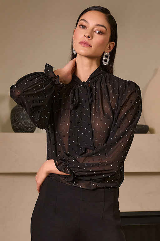 Joseph Ribkoff Black/Silver Studded Sheer Chiffon Pussy Bow Top 254200