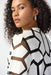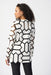 This stylish Joseph Ribkoff jacket features a unique laser cutout geometric faux leather design with mesh inserts, making it a standout piece in any wardrobe. With its elegant details and modern appeal, this jacket is perfect for those seeking sophisticated Joseph Ribkoff jackets.