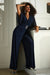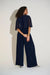 Joseph Ribkoff Midnight Blue Ruched Flutter Cape Sleeve Jumpsuit 253723