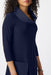 This stylish Joseph Ribkoff midi dress combines mixed fabric with a unique mesh insert at the hem, adding a touch of elegance. Featuring a cowl neckline, 3/4 sleeves, and a handkerchief hem that falls below the knee, it offers a modern silhouette with a practical front pocket.