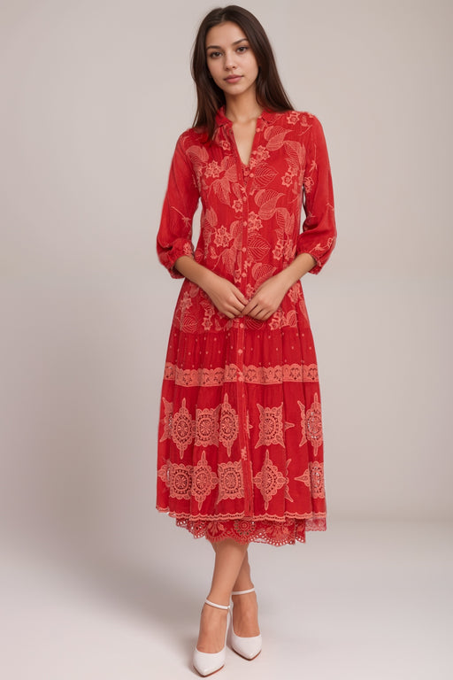Johnny WasCrafted from a lightweight cotton and linen blend, the Whimsical Hibiscus Pleated Yoke Dress is a statement in bold color. Featuring an intricately...
