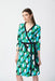 This stylish Joseph Ribkoff shift dress combines a retro geometric print with a modern faux wrap design. Made from silky knit fabric, it features a flattering waist tie, crossover V-neckline, and 3/4 sleeves. The knee-length hem offers a polished, versatile look that’s ideal for any occasion.
