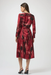 Joseph Ribkoff Black/Red Abstract Print Belted 3/4 Sleeve Fit and Flare Dress 254124
