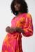 Joseph Ribkoff Pink/Orange Floral Print Belted 3/4 Sleeves Wrap Dress 251906