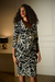 Elevate your style with the Joseph Ribkoff Black/Vanilla Floral Print Faux Wrap Sheath Dress. Crafted from luxurious foiled twill fabric, it offers a subtle shine and smooth texture. The portrait collar and three-quarter sleeves create a flattering silhouette, while the invisible back zipper ensures a sleek, seamless finish. Perfect for making a sophisticated statement at any event.