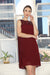 Joseph Ribkoff Merlot Pleated Faux Leather Trapeze Dress 253916