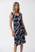 Turn heads in this Joseph Ribkoff dress, a chic sheath style crafted from soft silky knit fabric. Featuring a bold geometric print and elegant gold-tone waist ornament, it flatters the figure with a classic v-neck and sleeveless design. The knee-length cut and back zipper closure offer a sleek finish, making this stylish dress perfect for workdays, evenings out, or special events.