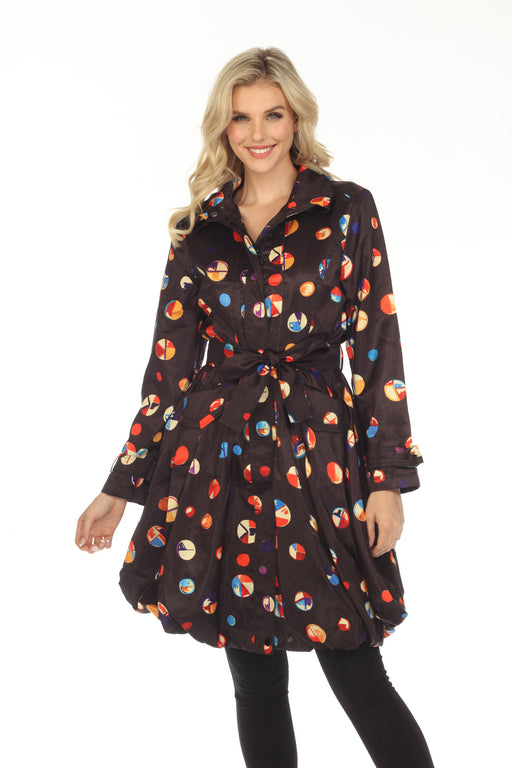 Samuel Dong Black/Multi Dots Belted Water Resistant Bubble Trench Coat 11665