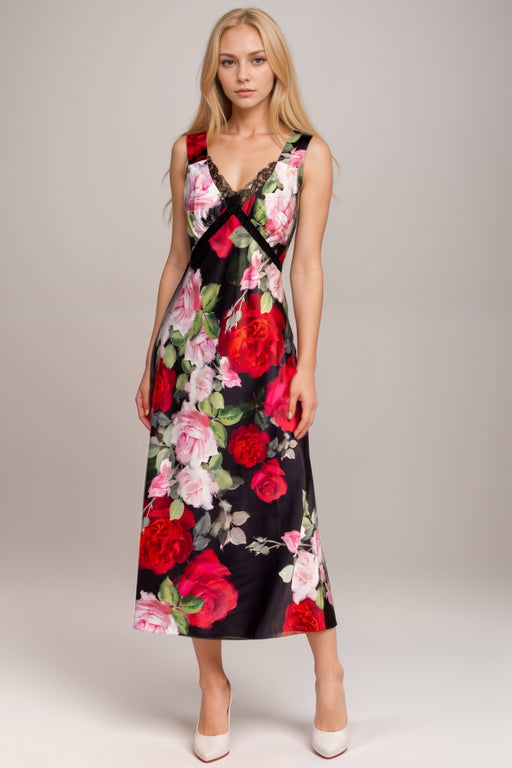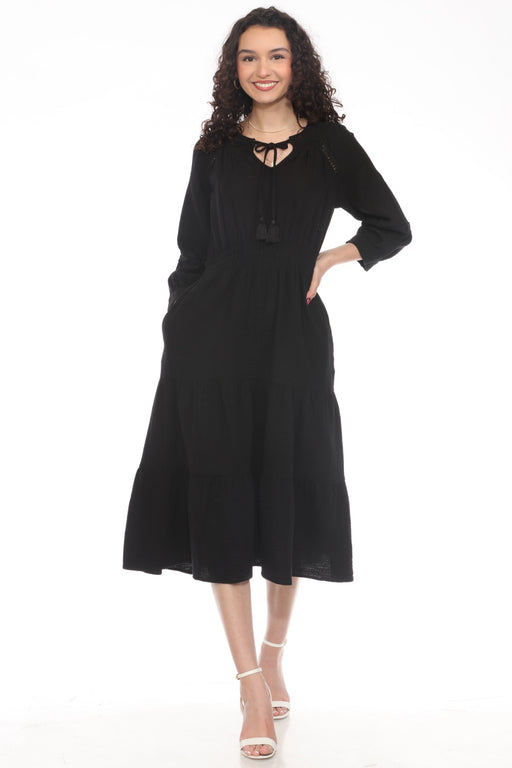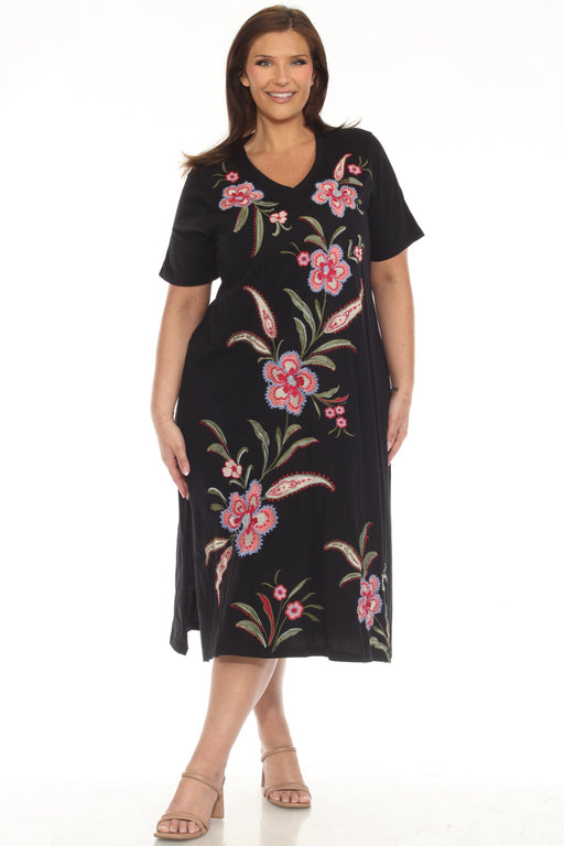 Johnny Was Jade Black Karolina Floral Tea Length Dress L31625-1