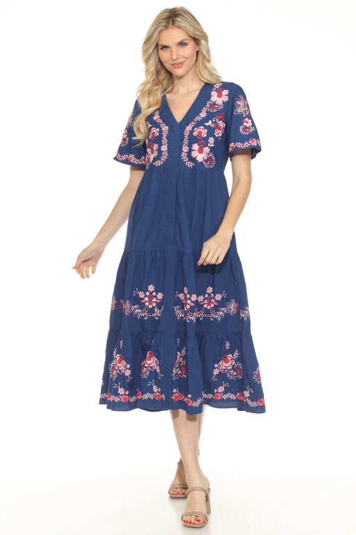 Johnny WasMake a bold and beautiful statement in the Johnny Was Karolina Tea Length Dress, where vibrant florals, feminine design, and boho elegance come tog...