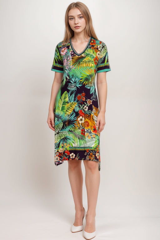 Joseph RibkoffBreezy, bold, and perfect for sunny getaways, the Joseph Ribkoff Tropical Print Sundress is a warm-weather must-have. Made from soft, breathable g...