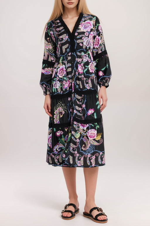 Johnny WasStep into effortless sophistication with the Johnny Was Julia Tiered Maxi Dress, a breathtaking blend of luxury and artistry. Crafted from 100% sil...