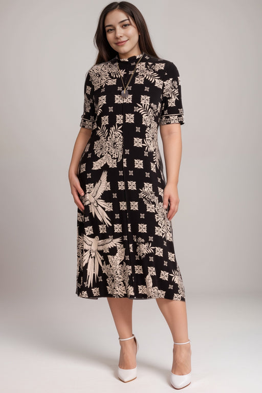 Joseph Ribkoff Mock Neck Long Cuffed Sleeve Trapeze Dress 254149