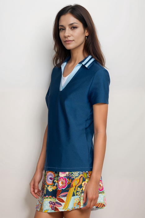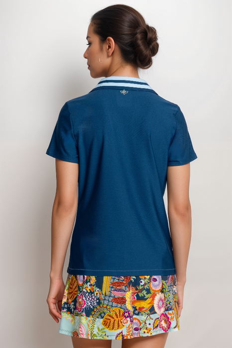 Presenting a perfectly polished activewear top, the Bee Active Basic Polo Tee reimagines a classic silhouette with a splash of color. Consciously crafted from a recycled fabric blend, this fitted top features a V-neckline and traditional polo collar. Pair with the Wild Bird Tennis Skirt to complete the look.