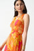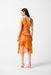 Step into the spirit of summer with the Joseph Ribkoff Pink/Multi Tropical Print Faux Wrap Midi Dress. This eye-catching fit-and-flare dress is crafted in lightweight chiffon and features a colorful tropical print with a stylish waist sash. Designed with a crossover v-neckline, sleeveless cut, and a hi-low hem that falls past the knee, this dress offers an effortlessly elegant look for any occasion.