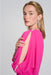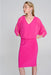 Shocking Pink Embellished Slit Sleeve Blouson Sheath Dress