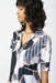 This Joseph Ribkoff maxi shirt dress boasts a sophisticated tonal abstract print, designed for effortless elegance. Featuring a collared neckline and short sleeves, this dress falls gracefully near the ankle, making it an ideal choice for various occasions.