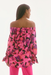 Joseph Ribkoff Black/Multi Floral Print Satin Off-Shoulder Boxy Top 251784