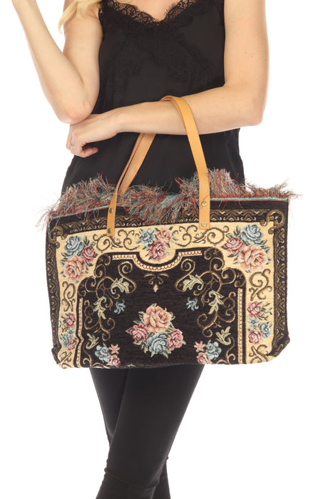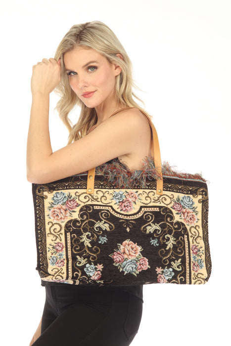 Jijou Capri Tapestry Leather Double Handle Handbag JC0321