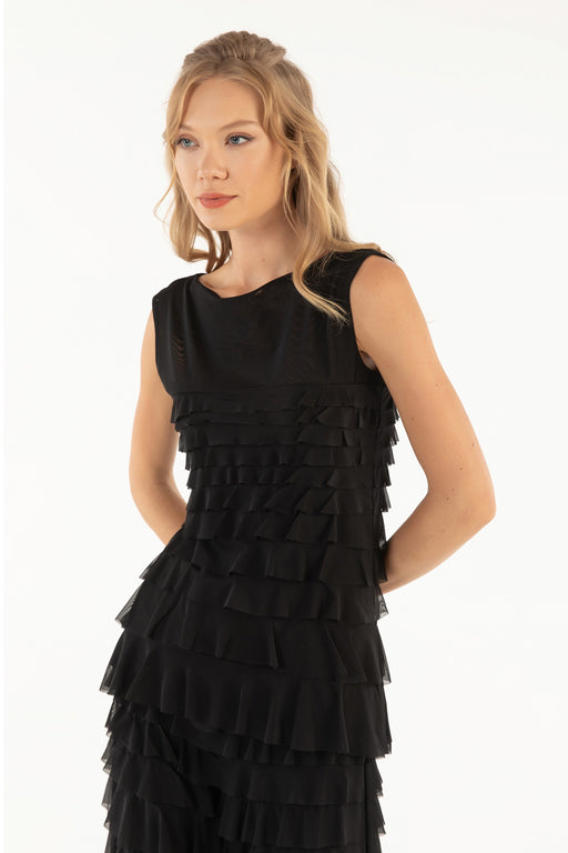 Isle by Melis Kozan Black Mesh Ruffled Miramar Top 421-15140