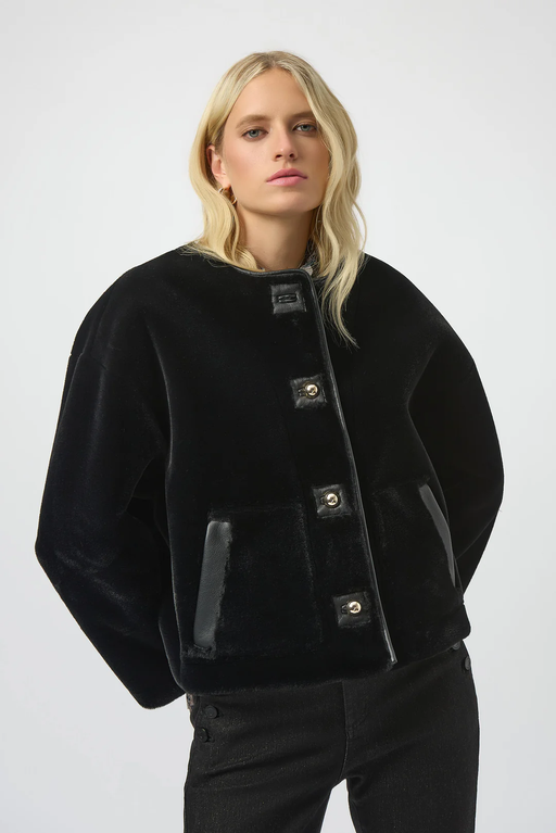 Joseph Ribkoff Black Faux Fur Crew Neck Boxy Jacket 254909