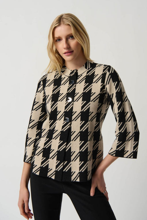Joseph Ribkoff Black/Brown Animal Print Fitted Blazer Jacket 253051