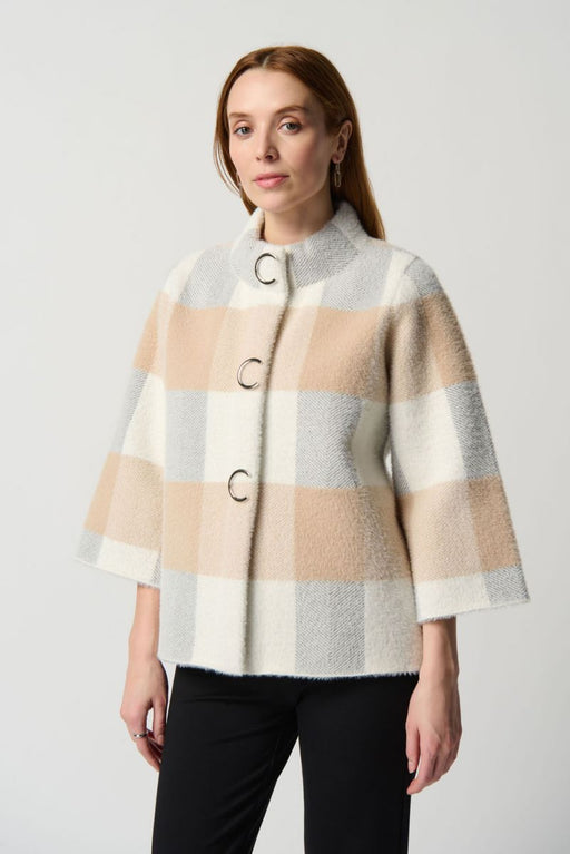 Joseph Ribkoff Black/White Plaid Print Faux Fur Coat 253900