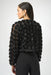 Add a touch of romance to your look with this Joseph Ribkoff bolero jacket, designed in a lightweight black fabric covered in 3D woven rosettes. The round neck, long sleeves, and cropped fit at the waist create a flattering silhouette that layers beautifully over dresses or tops. Perfect for women seeking an elegant and chic evening layer, this bolero brings a stylish statement to your night out, party, or special occasion. Pairs well with Joseph Ribkoff 254102 pant.