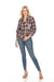 Johnny Was Workshop Plaid Embroidered 3/4 Sleeve Shirt Boho Chic W13224
