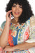 The Johnny Was Boho Tunic Swim Cover-Up Dress Plus Size CSW1521-AX adds effortless elegance to your summer wardrobe. Crafted from lightweight, breathable viscose, this cover-up showcases a vibrant floral print with fringe trim. Designed for comfort and style, it features a round neckline, 3/4 sleeves, a tasseled waist tie, and a knee-length hem. Perfect as a layering piece for poolside lounging or beach outings.