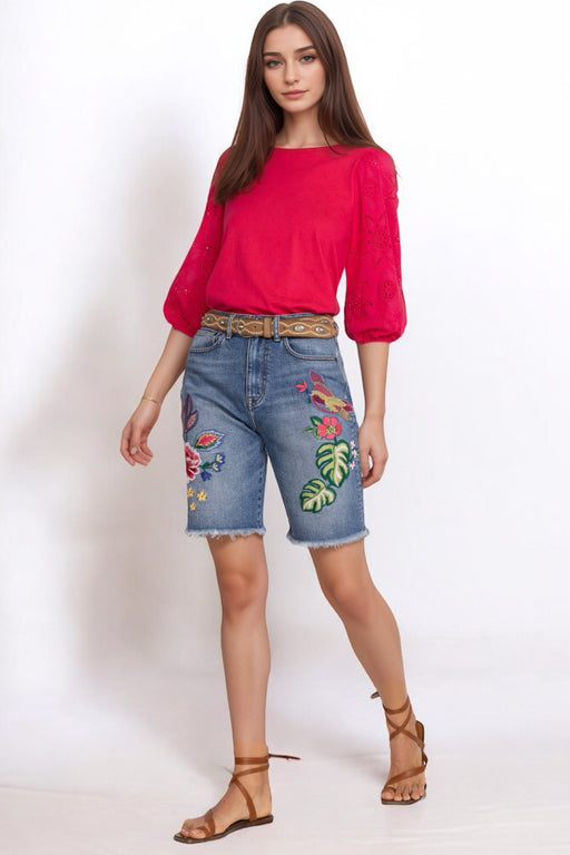 Johnny WasThis Johnny Was Jeanette Bermuda Cargo will add flair to any outfit. It is designed in a solid color with floral placement embroidery. It als...