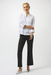 These Joseph Ribkoff pull-on flared pants feature a comfortable covered elastic waistband for a perfect fit and faux pocket flaps with buttons that add stylish detail. The black and off-white checkered print creates a striking look, effortlessly elevating your wardrobe with a modern twist on classic flair. Ideal for both casual and dressy occasions, they combine comfort and elegance in one versatile piece.