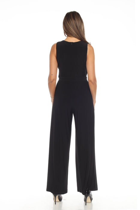 Joseph Ribkoff Black Ruched Belted Sleeveless Wide Leg Jumpsuit 244192