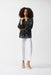 Delicate and stylish, this Joseph Ribkoff Top is crafted from lightweight chiffon with a polka dot design for a soft, feminine feel. The elegant keyhole neckline with metal link adds a modern touch, while the puff sleeves and ruffled cuffs enhance its romantic charm. Designed in a relaxed pullover silhouette, this blouse offers effortless sophistication, perfect for pairing with trousers, skirts, or jeans for both day and evening occasions.