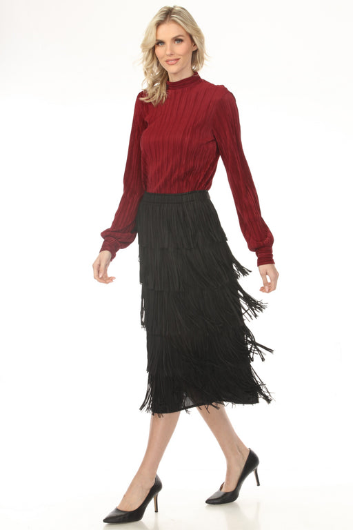Joseph Ribkoff Black Tiered Fringe Midi Skirt 254901