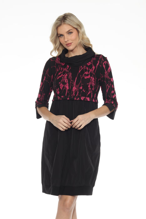 Joseph Ribkoff Black/Pink Abstract Print Cowl Neck Cocoon Dress 243300