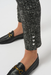 These Joseph Ribkoff wide-leg pants feature a structured contour waistband for a flattering fit and a stylish JR tab ornament at the front, adding a signature touch. The black and off-white abstract pattern makes them versatile for both casual and sophisticated looks. Comfortable to pull on and perfect for elevating your wardrobe with effortless elegance.