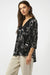 Joseph Ribkoff Black/Moonstone Face Print V-Neck 3/4 Sleeves Asymmetric Top 253138
