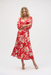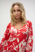 Joseph Ribkoff Red/Cream Floral Print V-Neck Puff Sleeve Top 252119