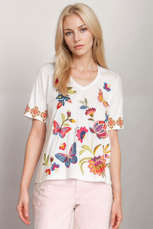 Johnny Was Biya Simmie Linen Embroidered Blouse B13424 *