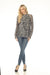 Joseph Ribkoff Beige/Black Animal Print Pleated Metallic Mesh Blouse 254140