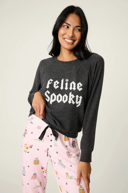 PJ Salvage Feline Spooky Graphic Fleece Sweatshirt RUFSLS2