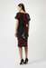 This striking Joseph Ribkoff sheath dress combines timeless elegance with modern flair. The classic boat neckline frames your shoulders beautifully, while short dolman sleeves offer a flattering, relaxed silhouette. A cinched waist sash defines your figure and adds visual interest to the sophisticated black and red floral print. The convenient side zipper opening ensures easy dressing and a polished fit. Perfect for elevating your everyday style or making an impression at special occasions.