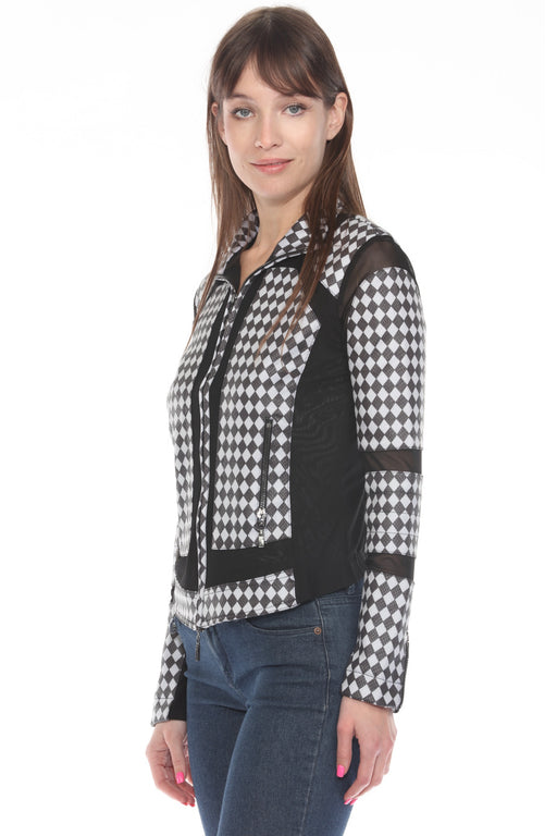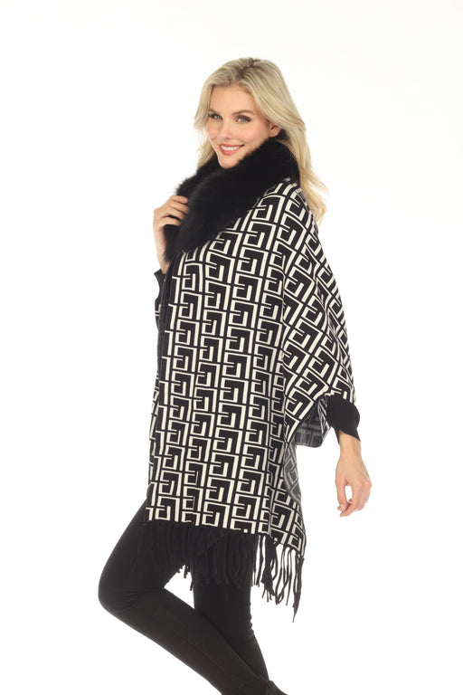 OO LA LA Black/White Check Fur Collar Cape Boho Chic M5167