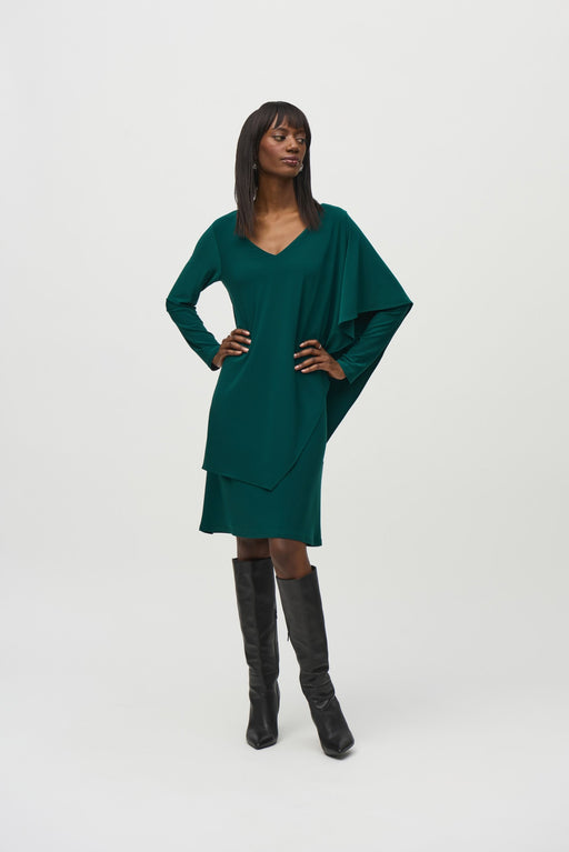 Joseph Ribkoff Draped Overlay V-Neck Shift Dress 244040