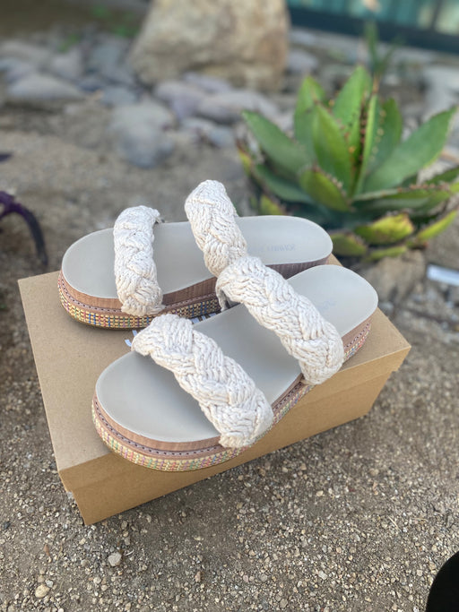 Johnny Was Cream Braided Rope Slip On Sandal Boho Chic JWS14023