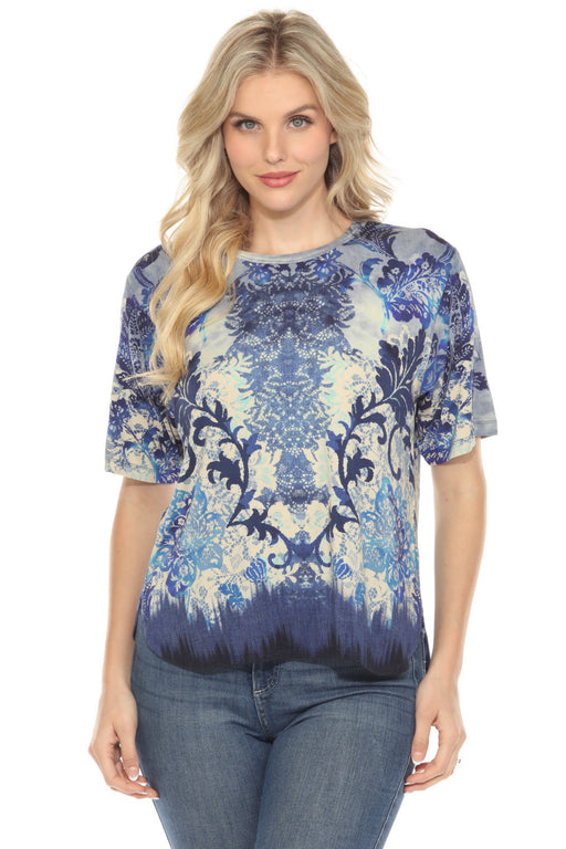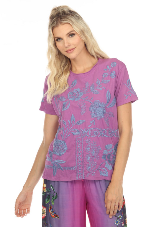 Johnny Was Blue Arizona Embroidered Everyday Tee R16423