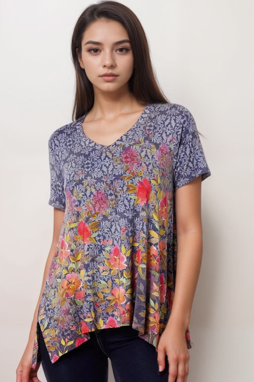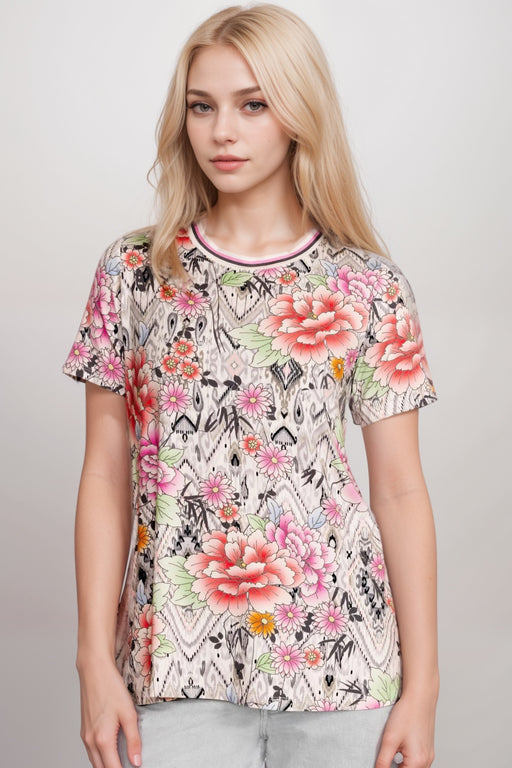 Johnny Was JWLA Floral Short Sleeve V-Neck Tee J30025-3
